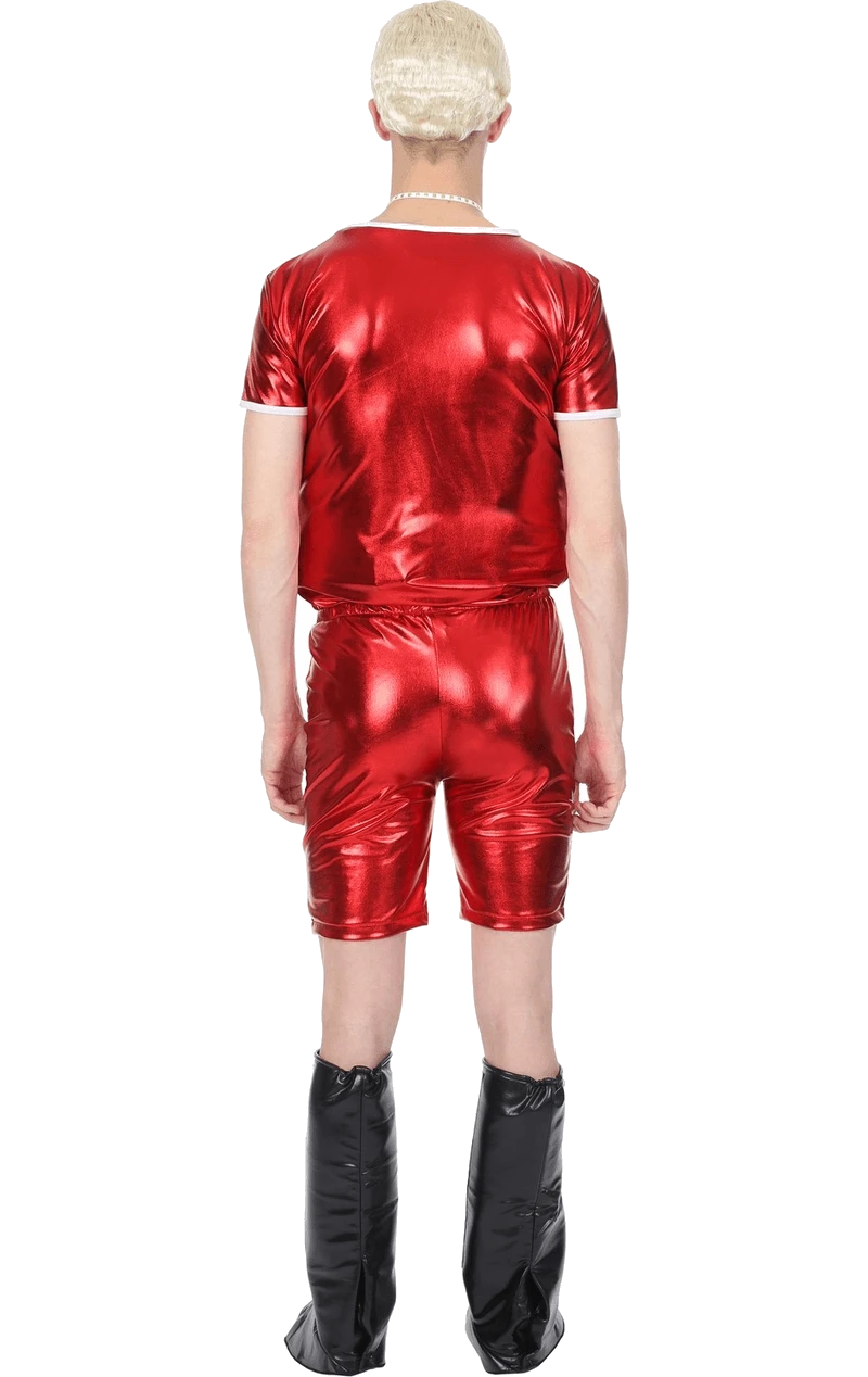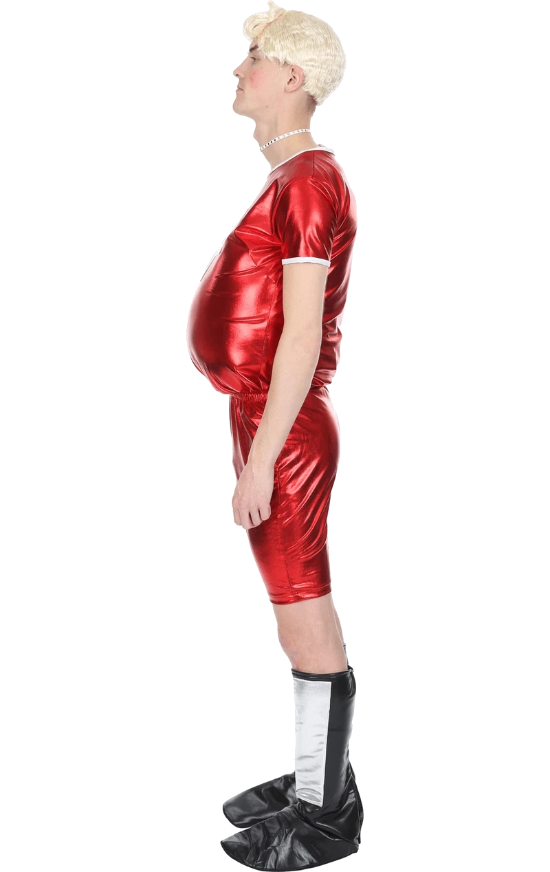 The Adult Daffyd Thomas TV Costume features figure-hugging, metallic finish red shorts, plus a matching top with a white cross printed on the front. The costume also comes with silver and black metallic boot covers, a platinum blonde wig and a silver choker. You’ll look exactly like good old Daffyd!