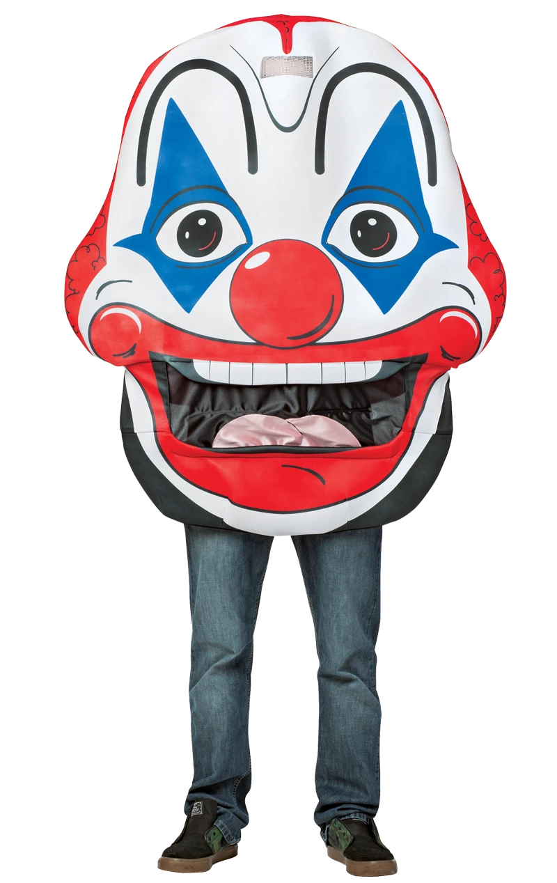 Featured on the Adult Giant Clown Costume is a colourful print of a clown face, a big red nose and classic make-up. Not only is it a huge costume and will be seen by everyone at the party, but the mouth moves too. Open and close the clown jaw as you pretend to talk – it’ll certainly bring the laughs with friends. Get practicing your best clown impression!