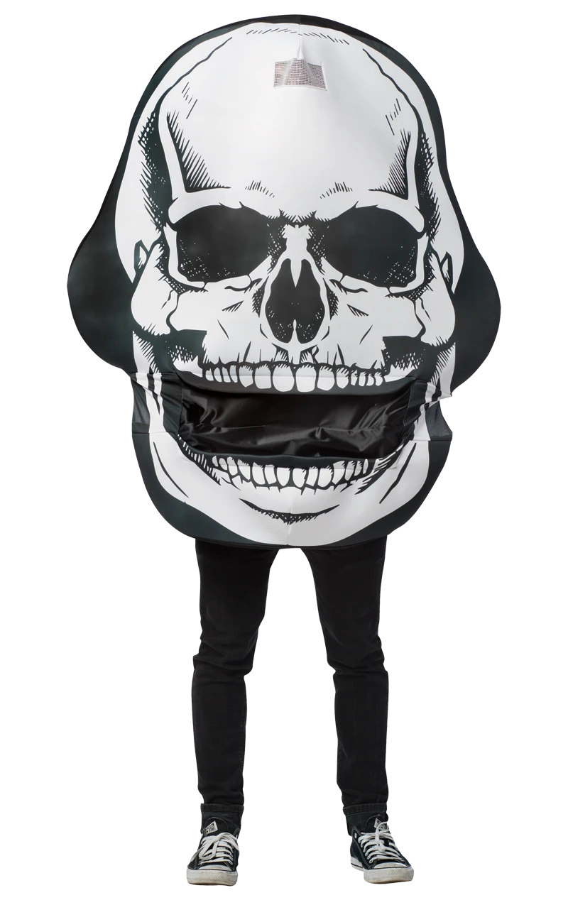 Stand out from the crowd in this impressive Adult Giant Skull Costume and get ready to shake your bones on the dancefloor! This quick, easy costume is sure to make a statement at any party you attend. We’ve all seen a classic skeleton costume, but not many people have witnessed a giant skull like this one!