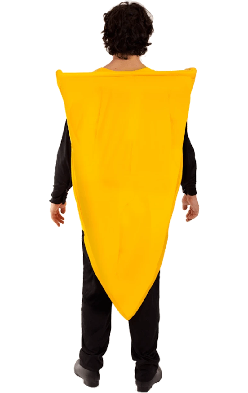 The Adult The Big Cheese Costume includes a large tunic in the shape of a slice of cheddar cheese. The tunic is comfortable and easy to slide over the head and will have you looking super tasty all night long.
