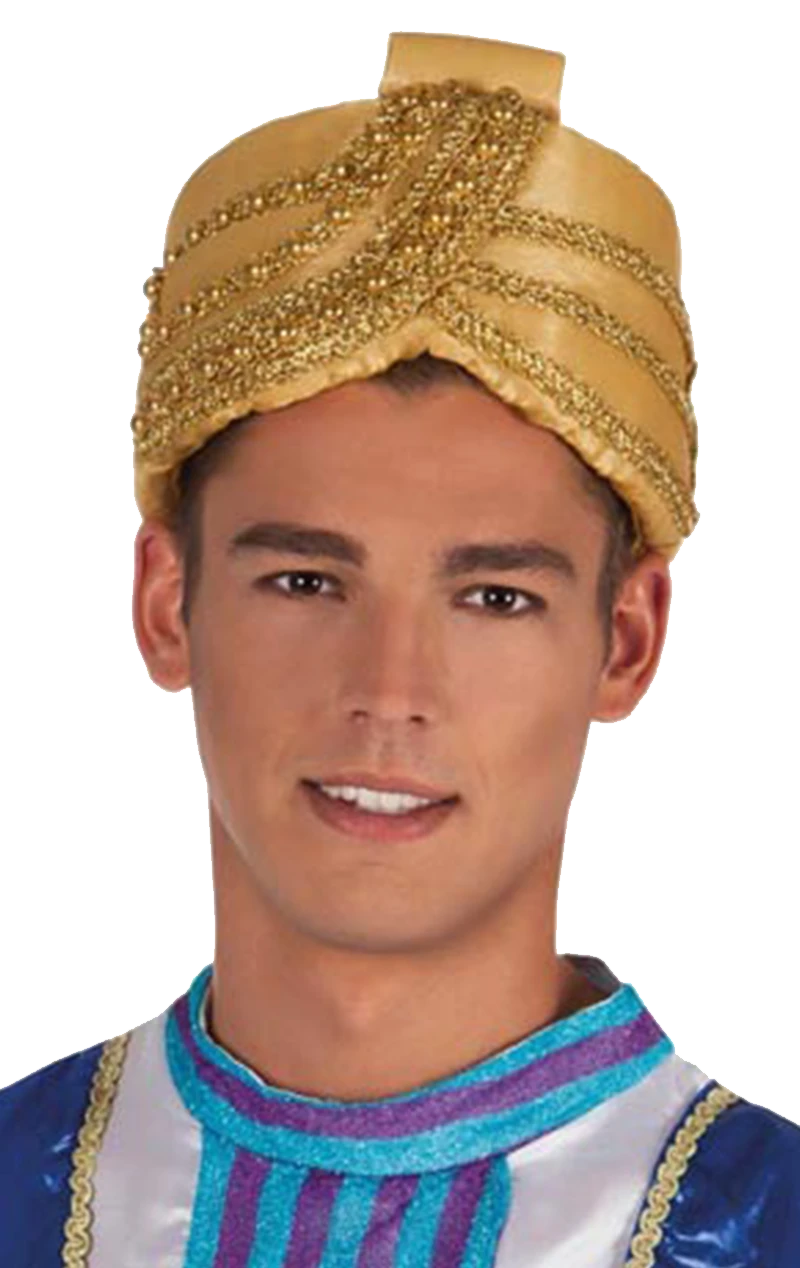 Whether you’re flying high on a magic carpet or wishing on a genie this golden turban will have all eyes on you!