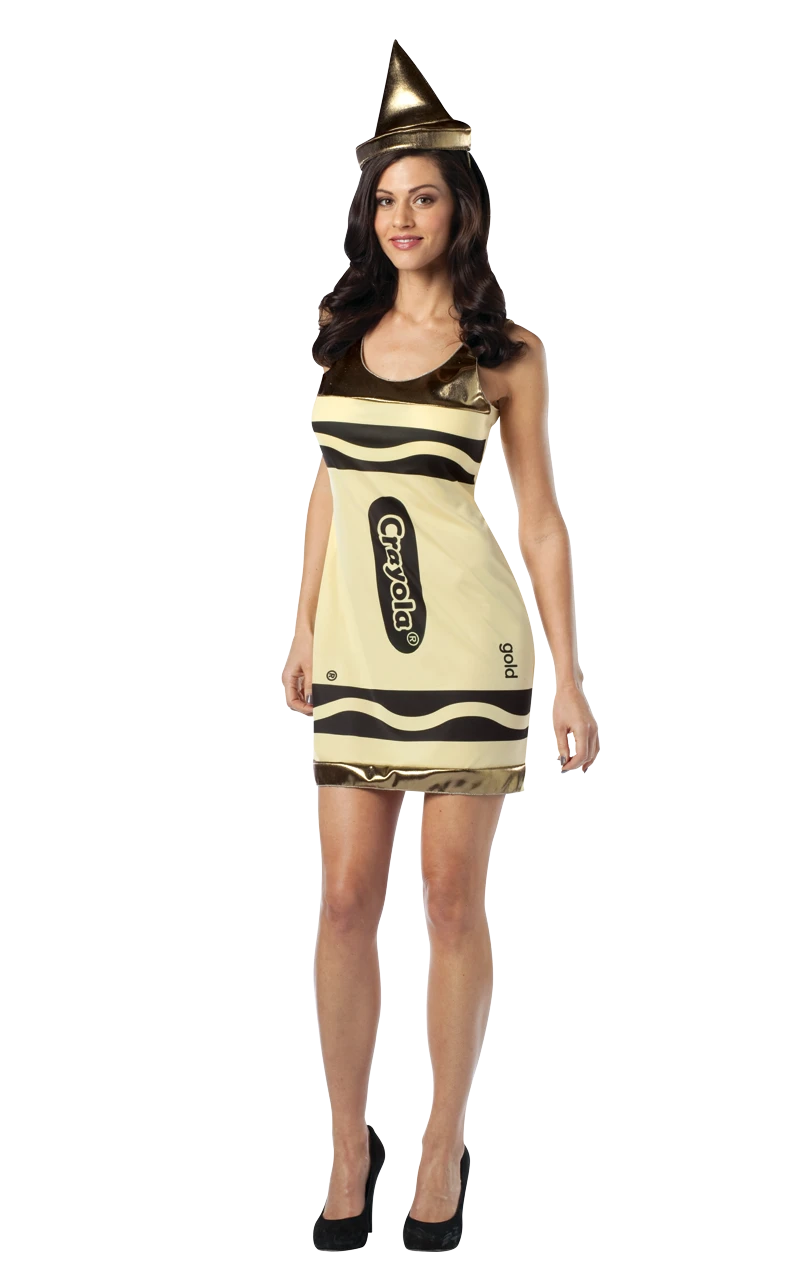 The Gold Crayola Tank Dress includes a dress with crayola print and metallic look finish and a mini hat on a headband. Other accessories are available separately.
