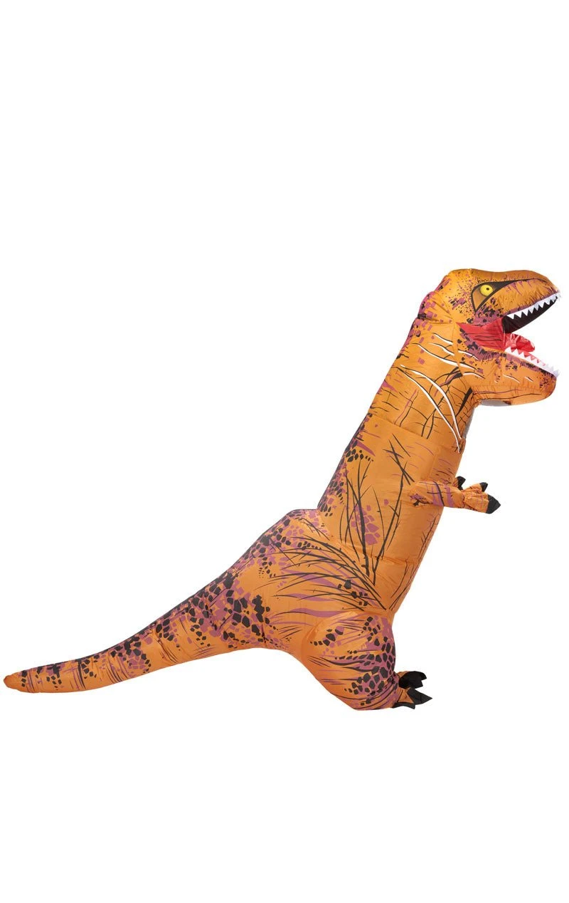 The Adult Inflatable Dinosaur Costume is made up of an all-in-one, inflatable dinosaur jumpsuit. The outfit has intricate detailing throughout, including the dinosaur’s claws and feet. There’s also a mesh square underneath the dinosaur’s head so you can see what’s going on in the real world. The best part of the costume is without a doubt the huge dinosaur head and his big red tongue that sticks out!