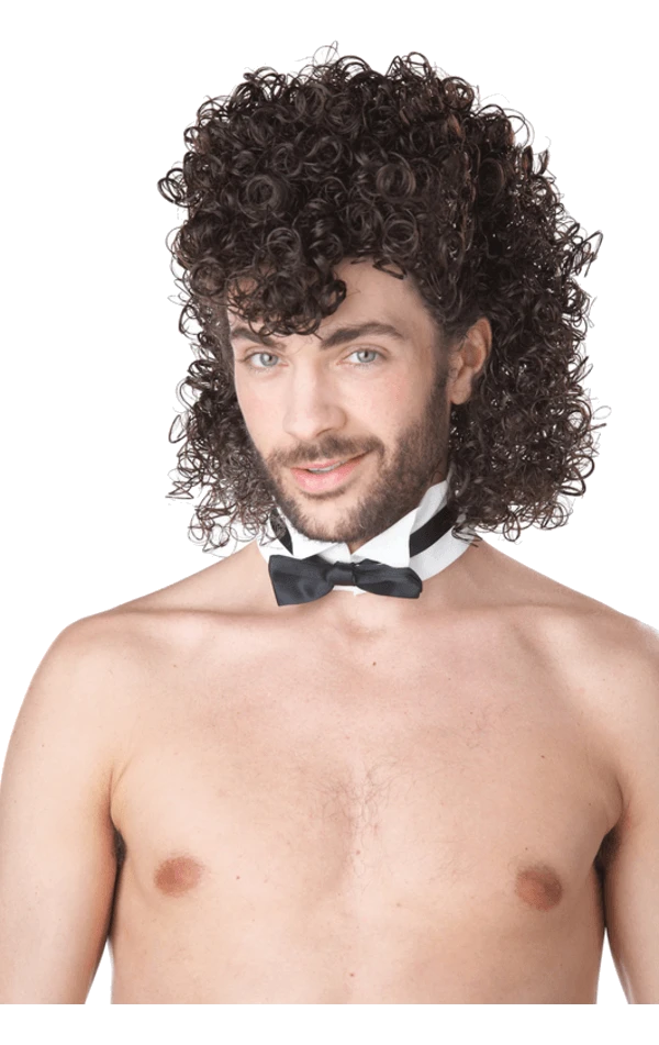 The Girls Night Out Wig has long tight curls with a collar and attached bow tie. Other accessories are available separately.