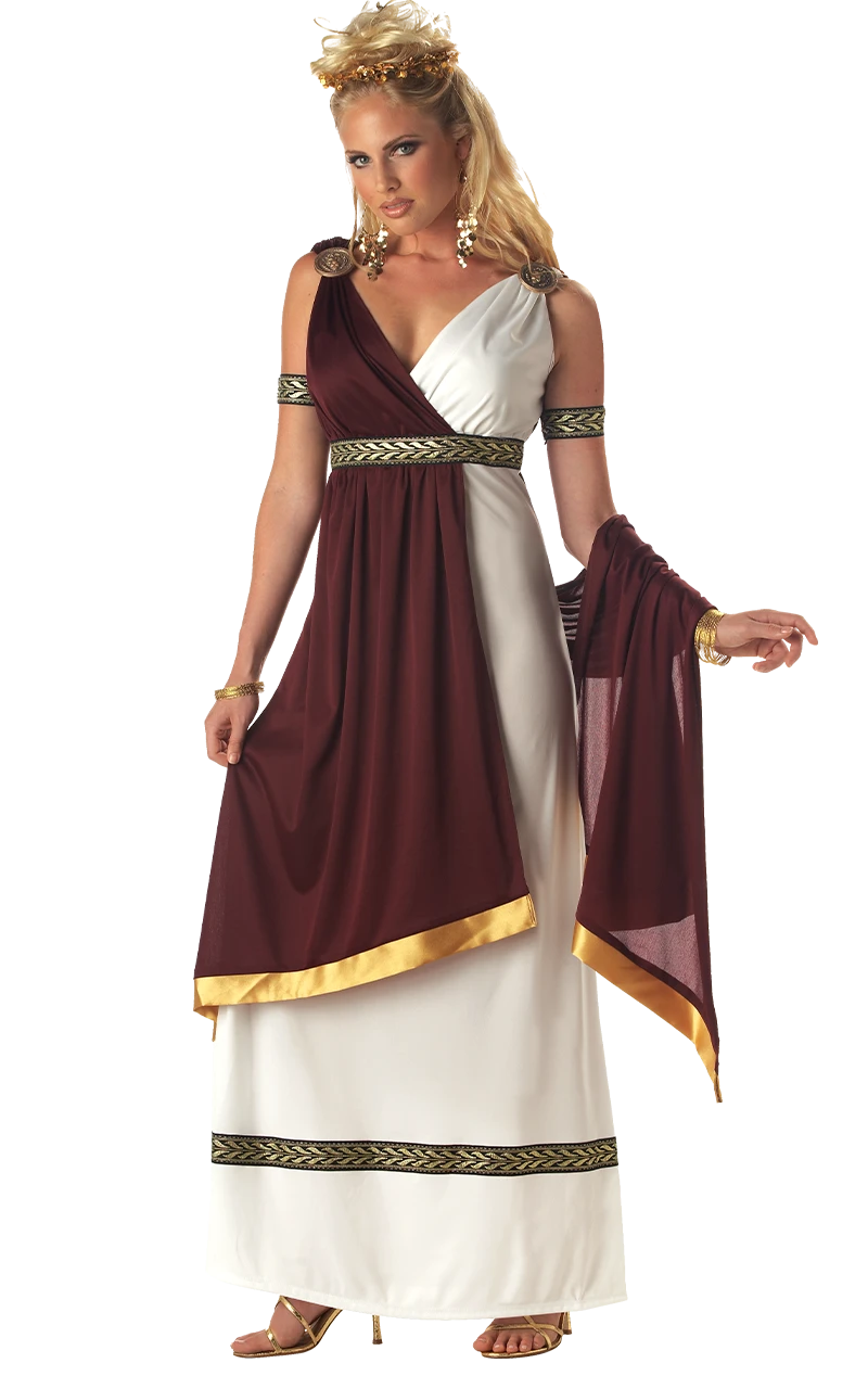 Going to a toga party and want to mix it up? Attending a fancy dress Roman themed event? We’ve got you covered in this royal looking flattering Roman Empress Costume! Not only will you look like a Princess but you will also look like a purple and white mythical Goddess sent from the skies…