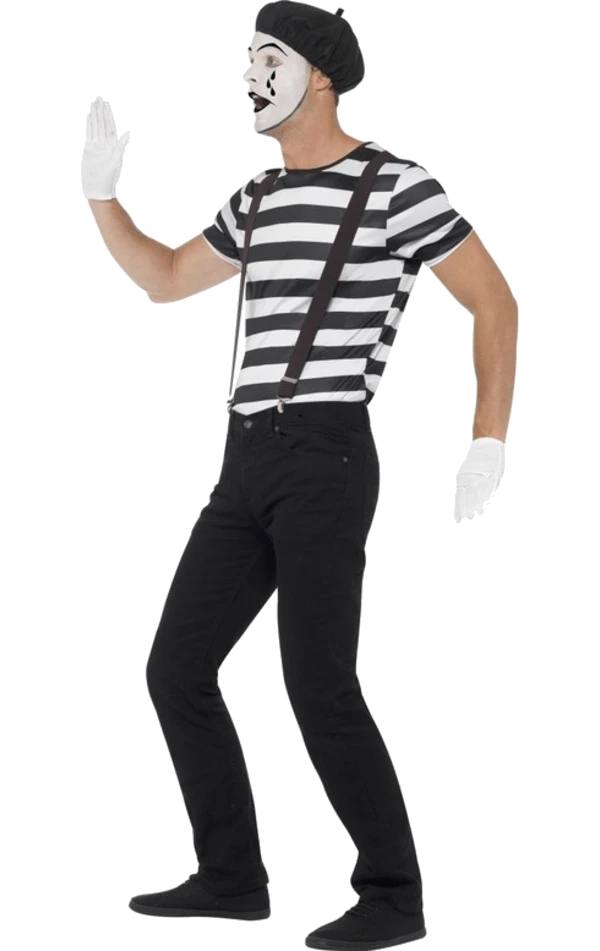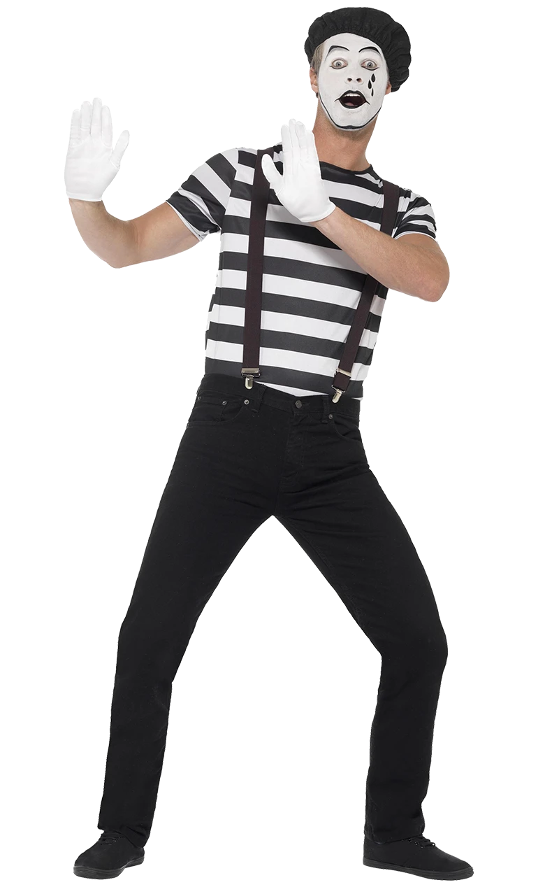 Showcase your amazing mime skills in this fantastic black and white harlequin clown style costume, based on the original French Pierrot circus look. Hanging out on streets in fancy dress just got a whole lot more fun! Wow the crowds with your invisible wall and your best facial expressions.