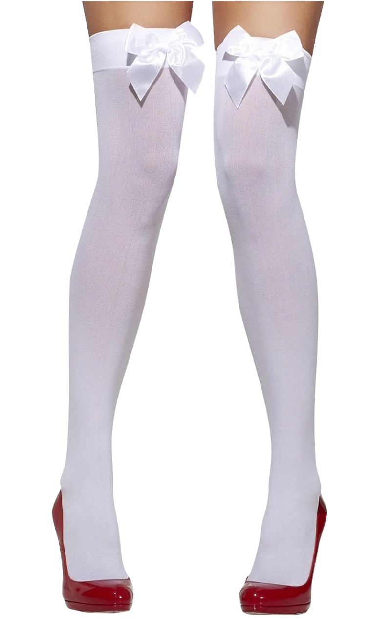 Maybe you’re going to an angels and devils party and want to capture that cutesy angelic look, or perhaps you are going as a zombie doll to a Halloween party! These Thigh High White Bow Stockings are versatile, suit many themes and can also be doused in fake blood for that gross look so get a pair and wear them how you want them!