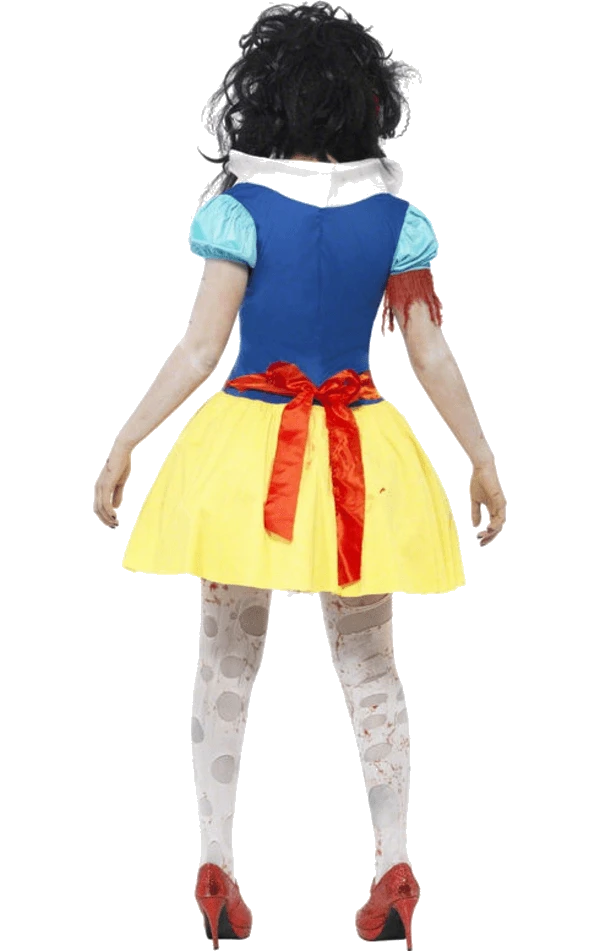 We have some bad news… You may no longer be the fairest of them all in our Womens Zombie Snow White Halloween Costume. You’ll be so consumed with eating brains, you’ll forget all about the huntsman currently searching for your heart! It’s a great addition to a Snow White themed group costume or a Disney themed party over Halloween. On the bright side, at least you won’t be tempted to eat any poison apples!