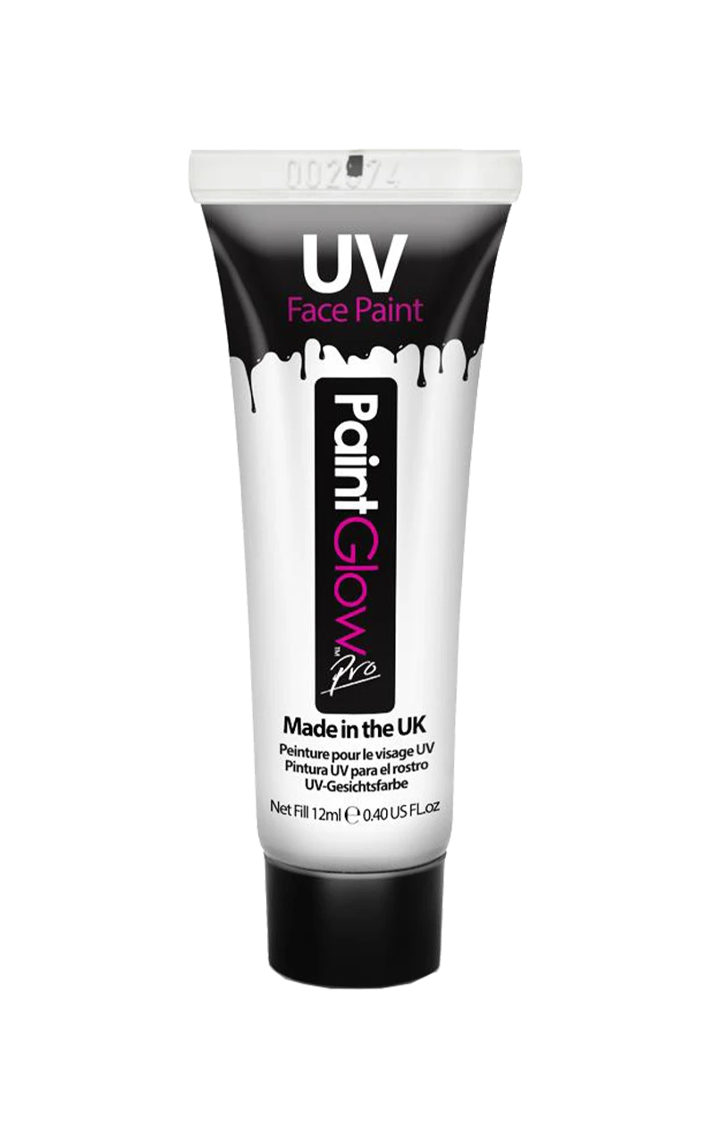With this handbag-sized White UV Face & Body Paint, you can get rave ready in seconds! Whether you’re attending a festival or club night, you can shine bright in the darkness when applying this UV face paint. It’s also perfect if you want to create a skull look for you skeleton costume this Halloween. Easy to apply, just dab on directly from the tube or create an intricate design using a paintbrush, this will glow all night and removes easily with water.