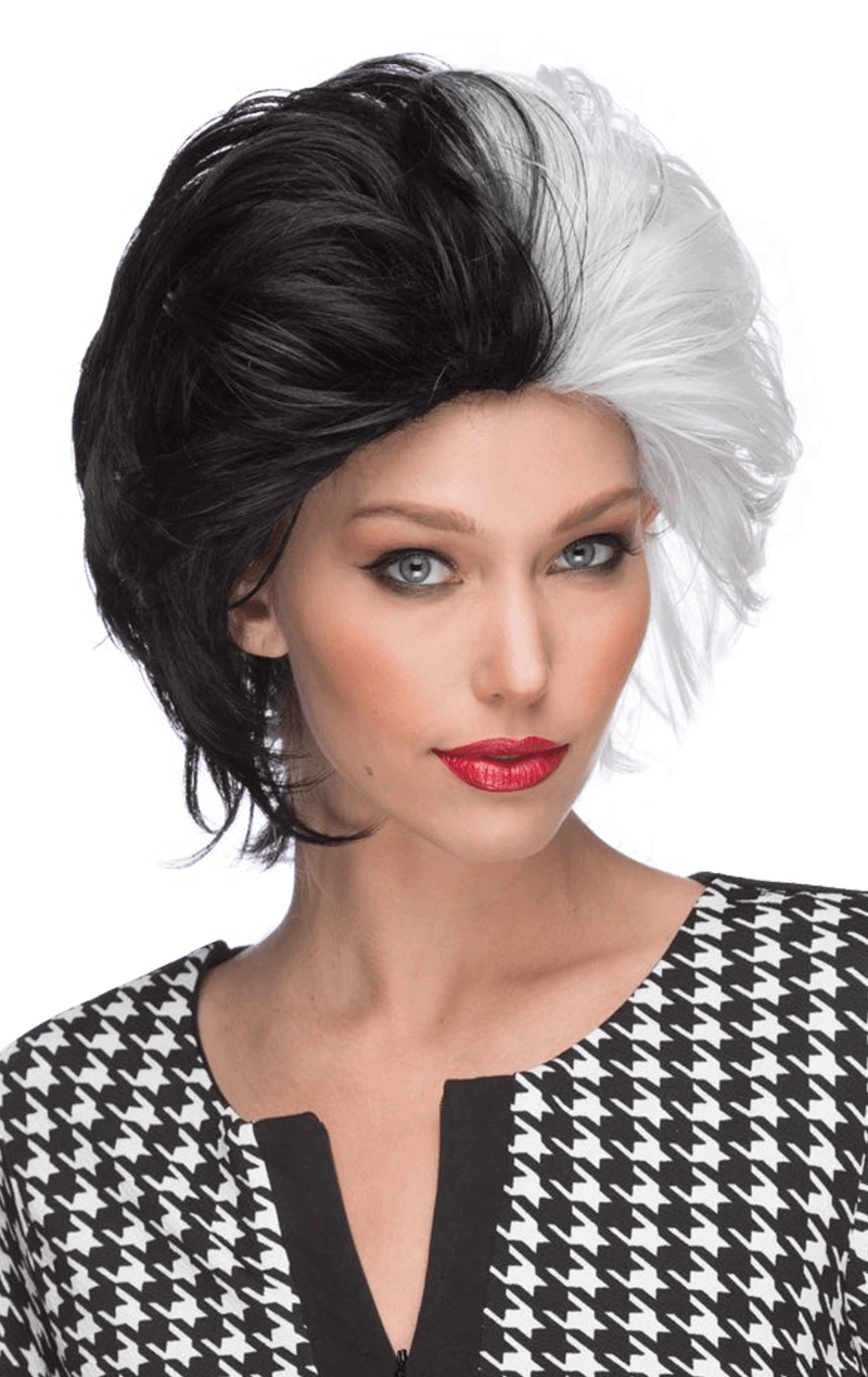 Channel your wicked side in this black and white wig, perfect for anyone aspiring to world domination – just don’t forget the dalmatians!