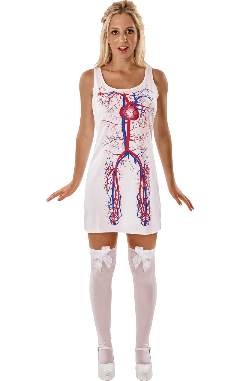 Looking for a Halloween costume for a low price? Something simple and easy, the Womens Blood Pumping Artery Costume shows off the anatomy of veins inside the body. Wear it plain or splash on some blood and wounds for an extra gory Halloween style. The same veiny style is reflected on the back of the dress too. As it’s such a low price, you can really make it your own. Add a few slashes and tears, squirt as much blood as you like onto it and pair it up with skull face makeup!
