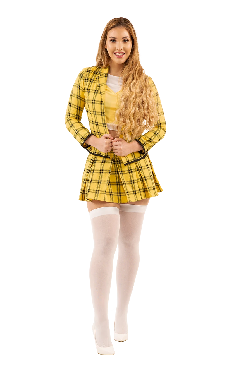 So here’s the 411. Like right now, this is the best costume on the scene! Don’t be completely clueless when picking an outfit for your next movie or 90s party, because this Womens Without a Clue Cher Costume is like totally dope! Everyone will be scoping you out when you arrive in this hot, yellow tartan jacket and skirt combo! Perfect for Halloween, why not team up with your bestie dressed as Dionne? You’ll get lots of snaps and claps from everyone as you arrive in this couples costume!