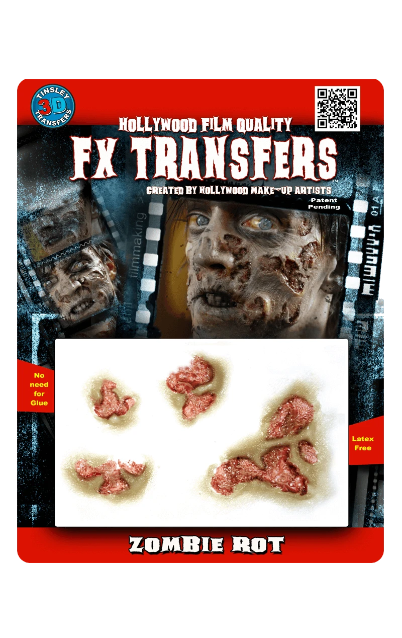 Going all out horror for Halloween and want to dabble with fake blood, a gory appearance and achieve that just been infected with a flesh eating disease/zombie look? Turn graves and stomachs with these Zombie Rot 3D FX Transfers!